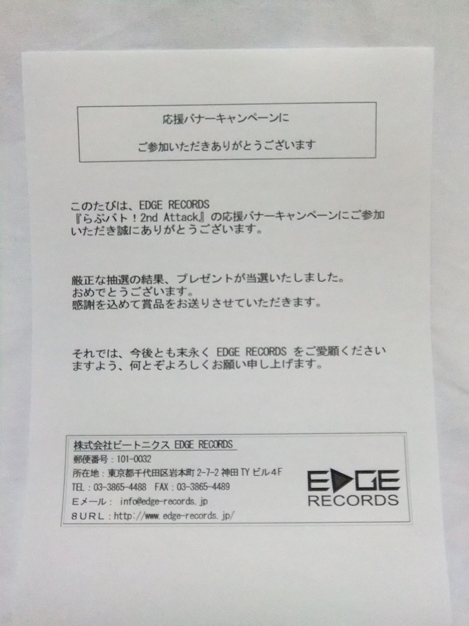 製品に同梱されているアンケートはがきに、その応募シールを貼り付けて送ると抽選でサイン色紙や各種グッズなどの賞品がプレゼントされます。