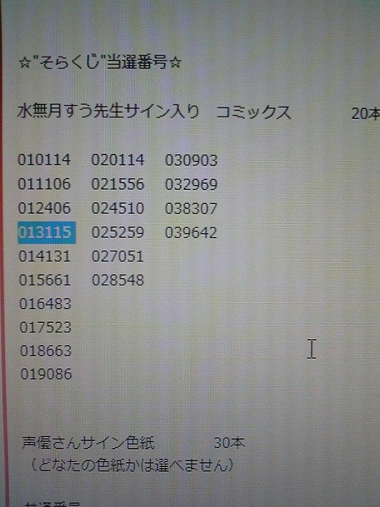 今日、カントク先生のサイン会に行ってまいりました。 着いたのが11時くらいで、すでに何人か周辺に来ていました。 11時15分丁度に受付開始でした。 大体サイン会には、90人くらい来ていました。 サイン会の前にトークが少しありました。 でいよいよサイン会となりましたが、サイン会には何回か参加したことがありますがやはり緊張しますね。 ちょっとだけですがカントク先生と話せて幸せでした。 ゲームの方も早く全ルート見なくちゃです。 会場にはすでに全コンプリートした人が二人もいました。 すごいです。