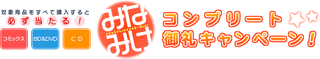 対象商品についている応募券を切り取り、4枚を一口として、郵便封筒に入れて ①郵便番号 ②住所 ③氏名 ④年齢 ⑤職業(学年) ⑥電話番号 ⑦好きなキャラクター ⑧『みなみけ』でほしいグッズ ⑨『みなみけ』の感想 を明記の上、ご応募ください。