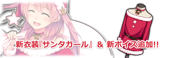 クリスマスキャンペーン中に『カノジョグ』をご購入いただくとヒロイン「桃瀬七夕」用の新きせかえ衣装【サンタガール】が追加されます!さらに新たな胸キュン☆ボイスも追加!お見逃しなく!