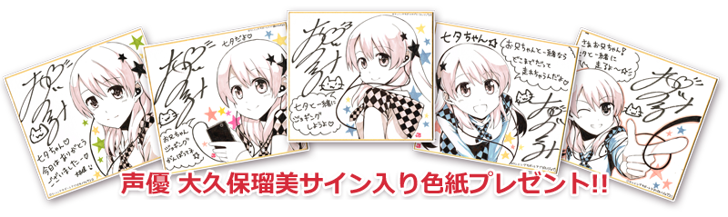 ヒロイン「桃瀬七夕」役を演じている声優 大久保瑠美さんのサインと